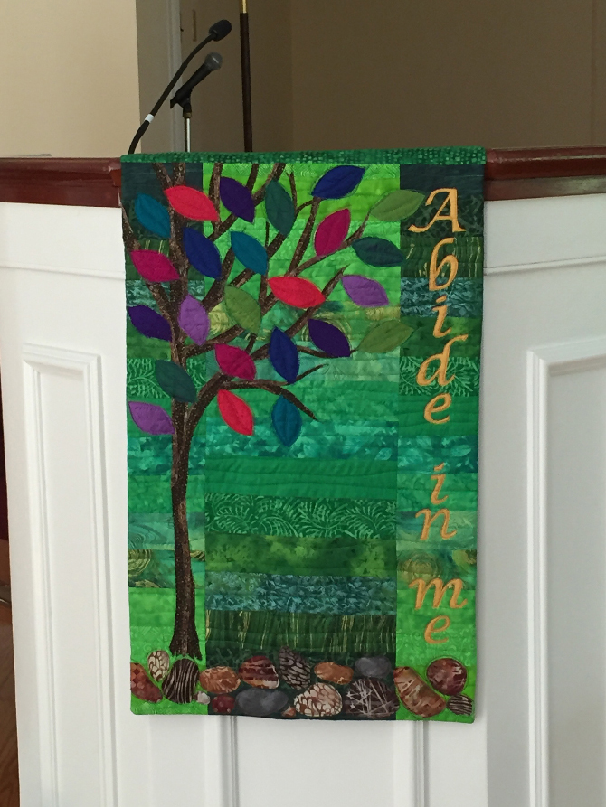 This quilt hangs in the sanctuary at the center of our